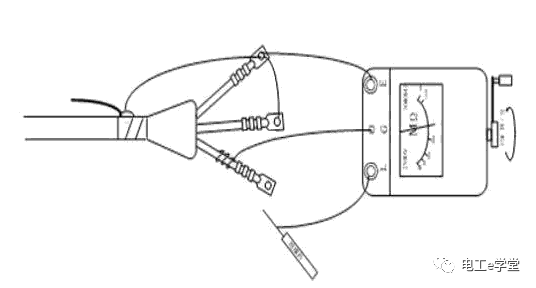 4、在测试三芯电缆时,一芯接(+),其他两芯应和铅包一同接地。如果被测电缆可能由于表面泄漏而引起测量误差时,还应连接保护环。5、摇动摇表到额定转速(1200r/min),绝缘电阻应是摇1min以后,电阻值稳定时的读数。测量时摇表转速不应低于额定转速的80%。6、电缆的一根芯线测试完毕后,经充分放电,再按同样方法分别检测其他各芯线。移相电容器在运行中应定期进行绝缘电阻的摇测,其绝缘电阻分为两极间的绝缘电阻和两极对外壳的绝缘电阻,由于电容器的两极间及两极对外壳均有电容存在,因此应特别注意摇测方法,否则容易损坏摇表。摇测低压电容器可采用500V摇表,其绝缘电阻应不小于20MΩ。摇测前,应先将电容器放电。摇测时,先将摇表摇至规定转速,待其指针平衡后,再将摇表线接至电容器的两极上,继续转动摇表。开始时由于对电容器的充电,指针会下降,然后慢慢上升直至稳定值,此时的读数即为电容器的极间绝缘电阻。记取读数后,应先将摇表线撤下,然后再停止摇动,否则会因电容器放电而烧坏表头,摇测后,应立即将电容器进行放电。由于电容器是由串、并联电容元件构成的,个别元件的绝缘劣化不会使整台电容器的绝缘电阻明显降低,所以极间绝缘电阻很难发现缺陷。因此这项试验一般不做,而只做单台电容器的两极对外壳的绝缘测定。电动机的三相绕组共有6个线头,接在接线盒的6个柱上。摇测时,先将电动机接线盒打开,拆下连接片,先摇测相间(绕组)绝缘电阻,然后将电动机绕组接于线路接线柱L上,外壳接E接线柱测量各相绕组对地(或对外壳)的电阻。